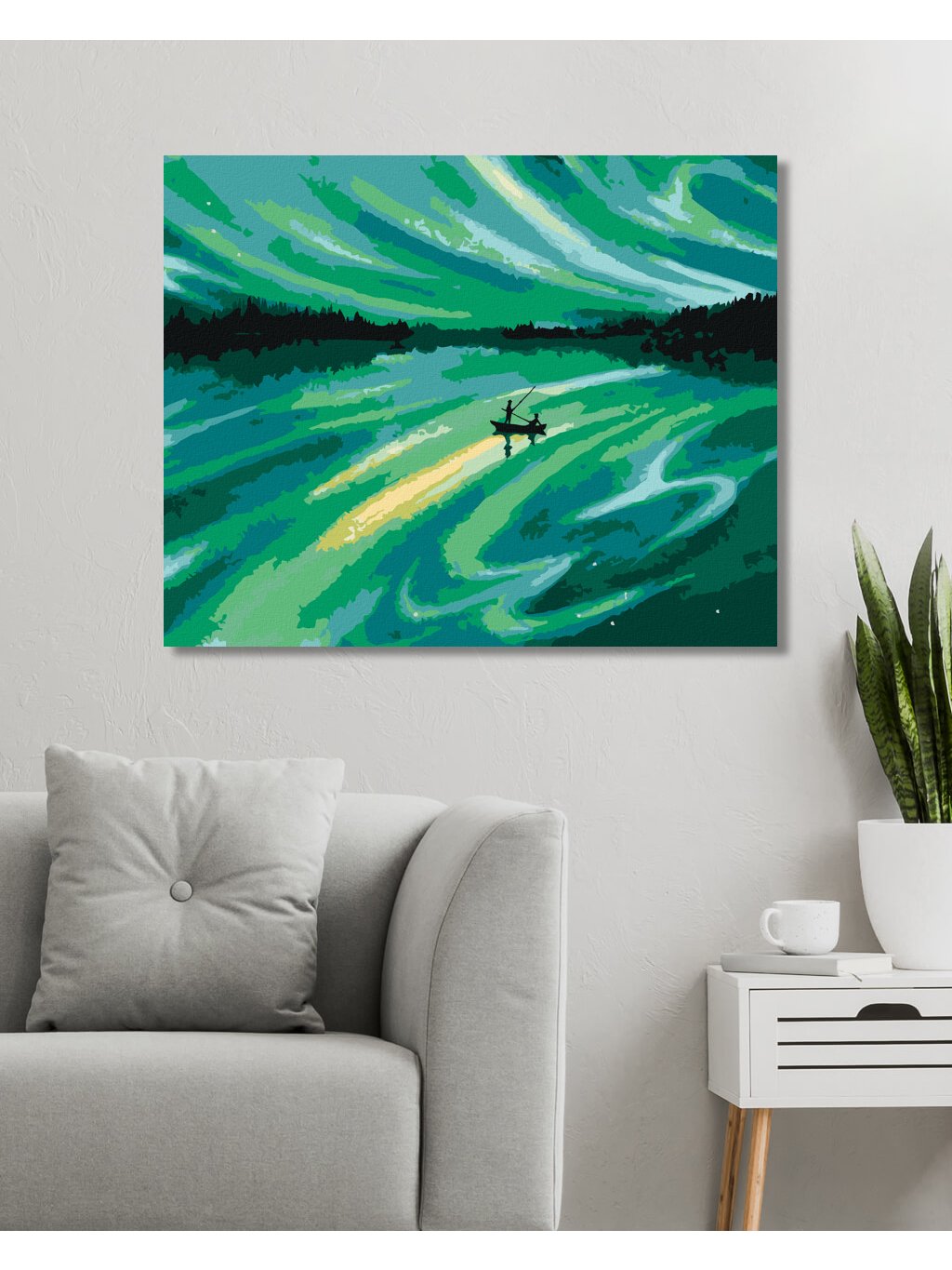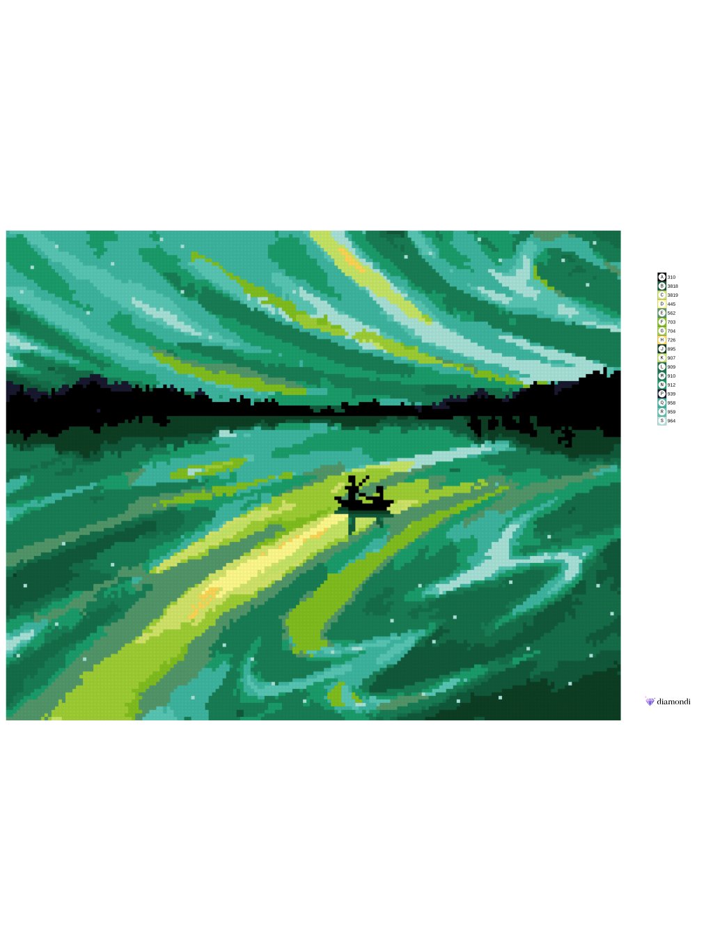 Diamantové maľovanie - PLÁVAJÚCA LOĎKA A ZELENÁ VESMÍRNA OBLOHA