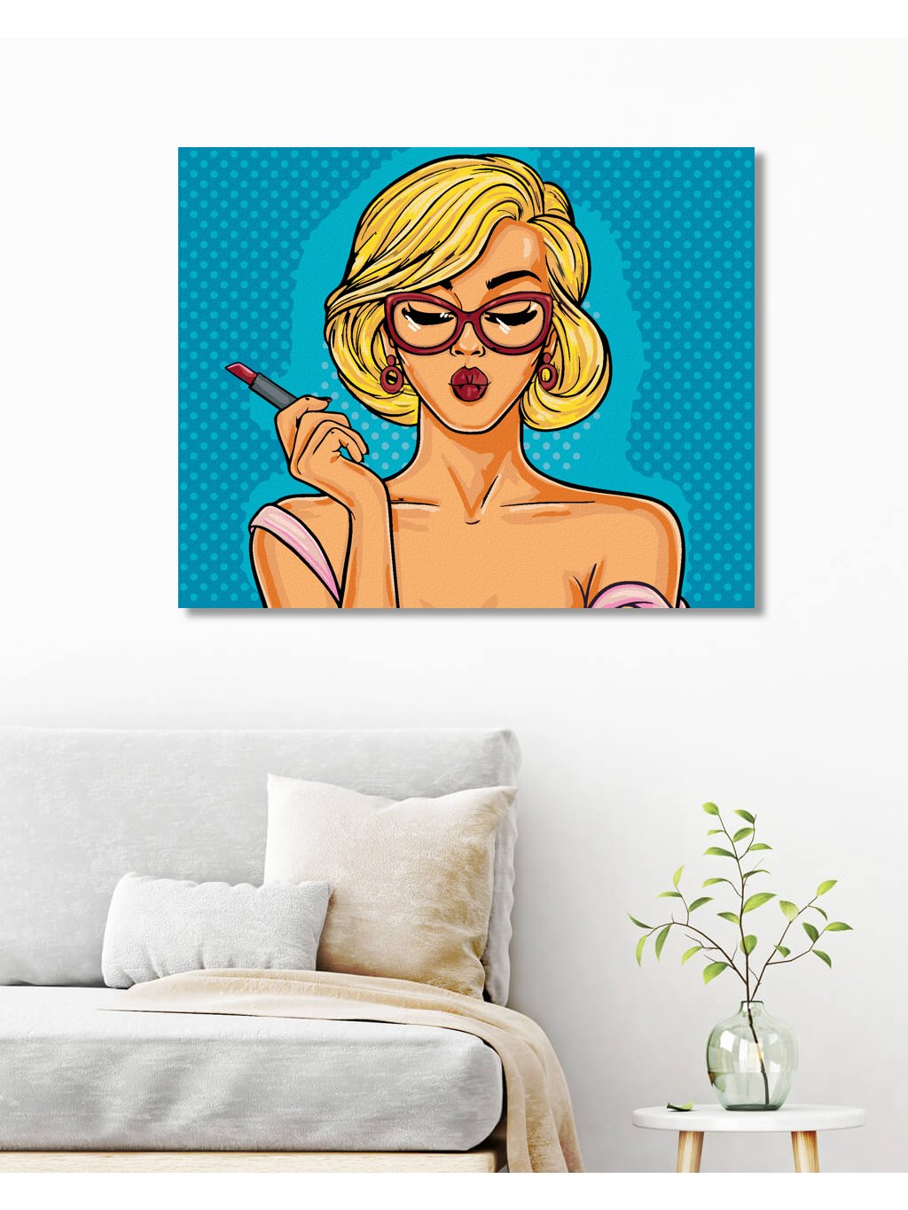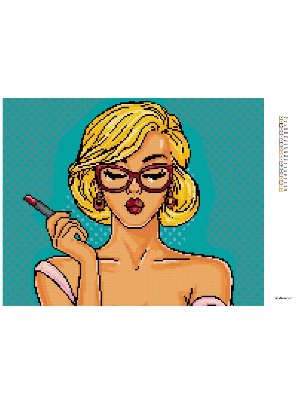 Diamantové maľovanie - POP-ART BLONDÝNA S RÚŽOM