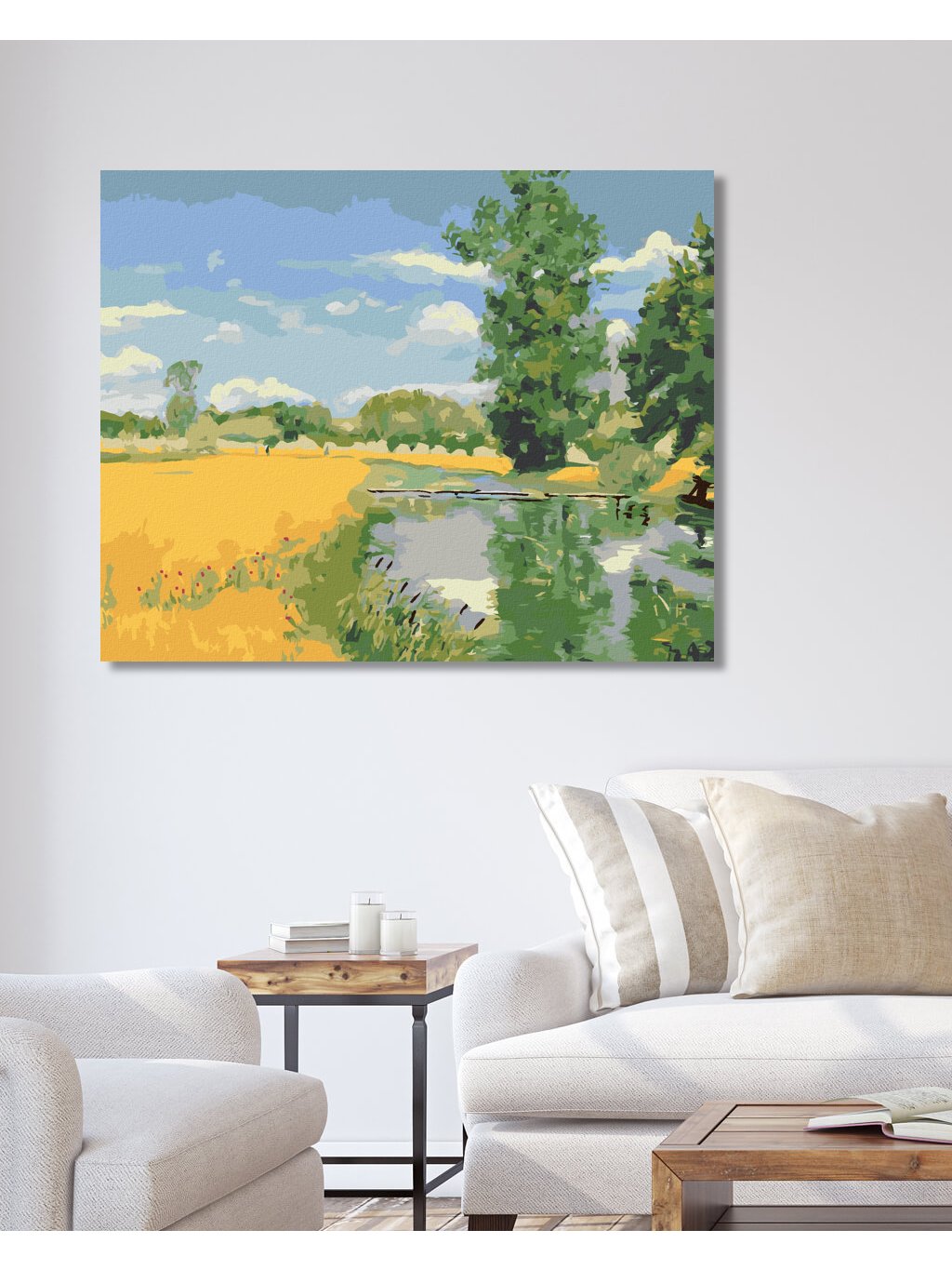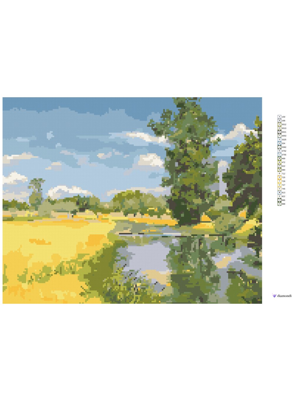 Diamantové maľovanie - RIEKA PRETEKAJÚCA KRAJINOU V DOBE ZBERU (H. A. BRENDEKILDE) (Rámovanie bez rámu a bez vypnutia plátna, Rozmer 40x50 cm)