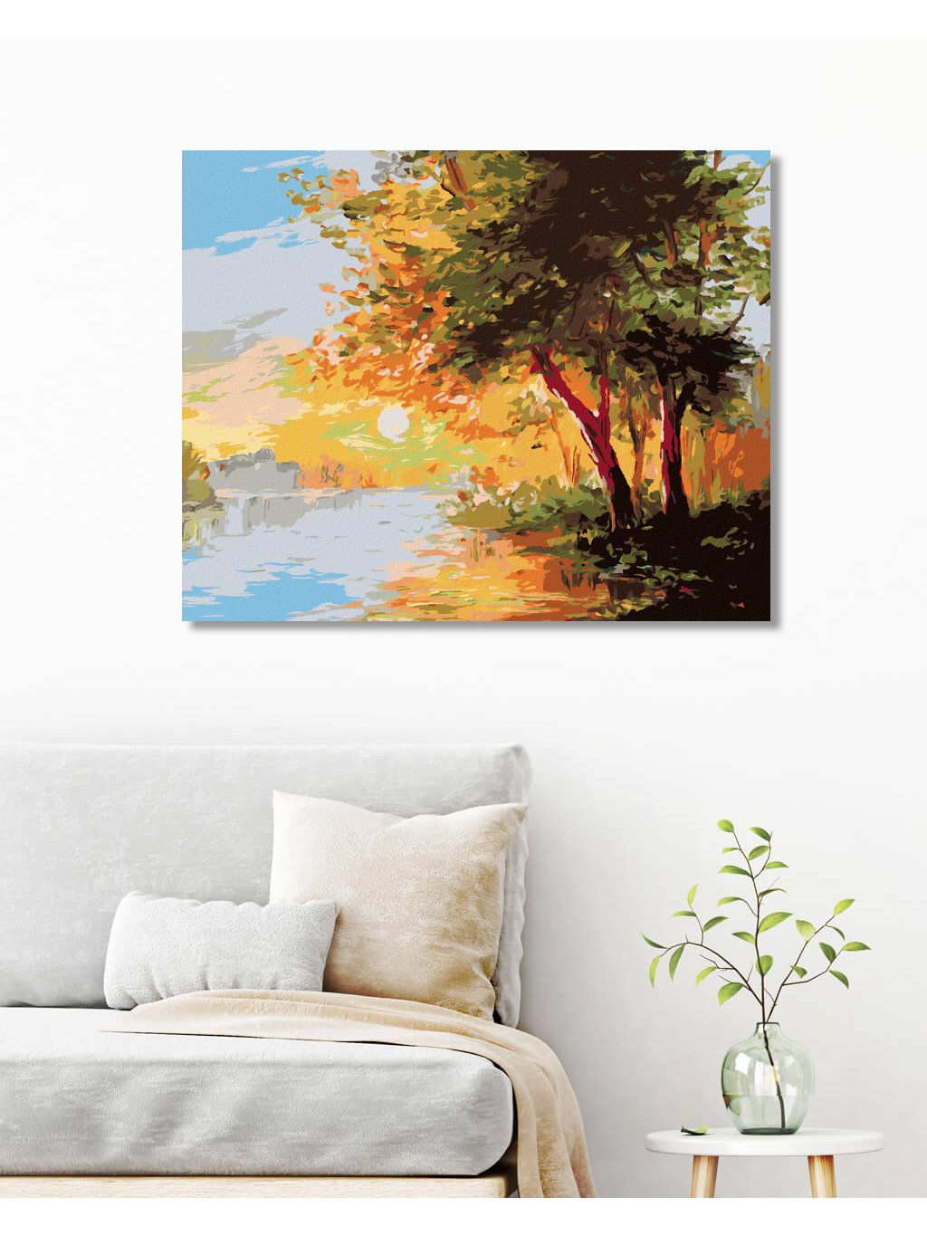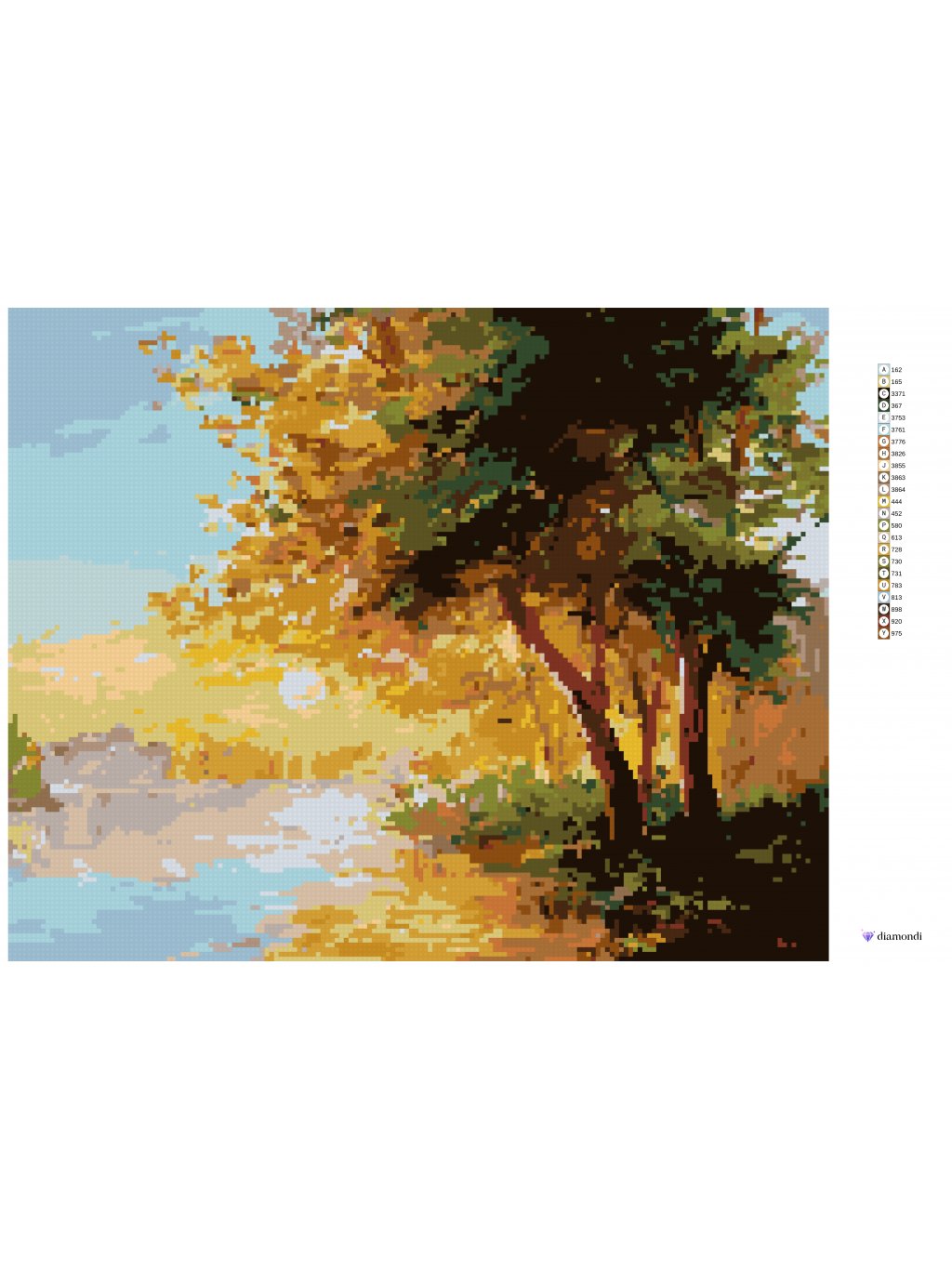 Diamantové maľovanie - RIEKA V JARNOM LESE A ZÁPAD SLNKA