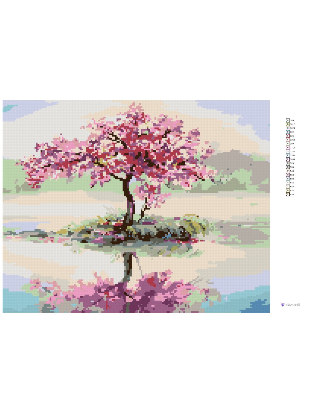 Diamantové maľovanie - ROZKVITNUTÁ SAKURA PRI JAZERE