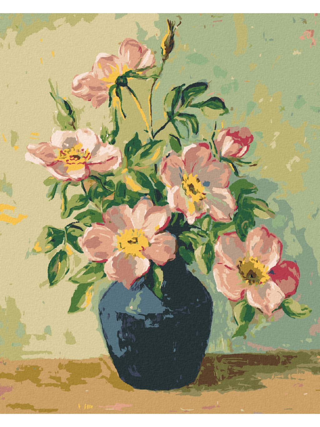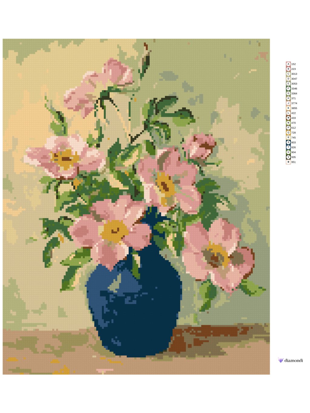 Diamantové maľovanie - RUŽOVÉ KVETY V MODREJ VÁZE