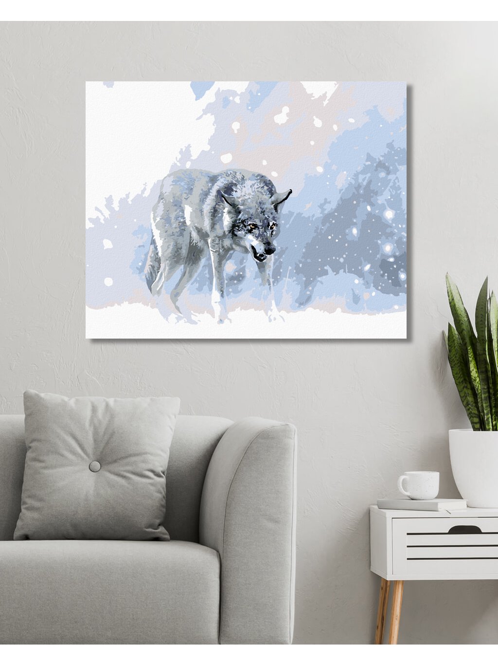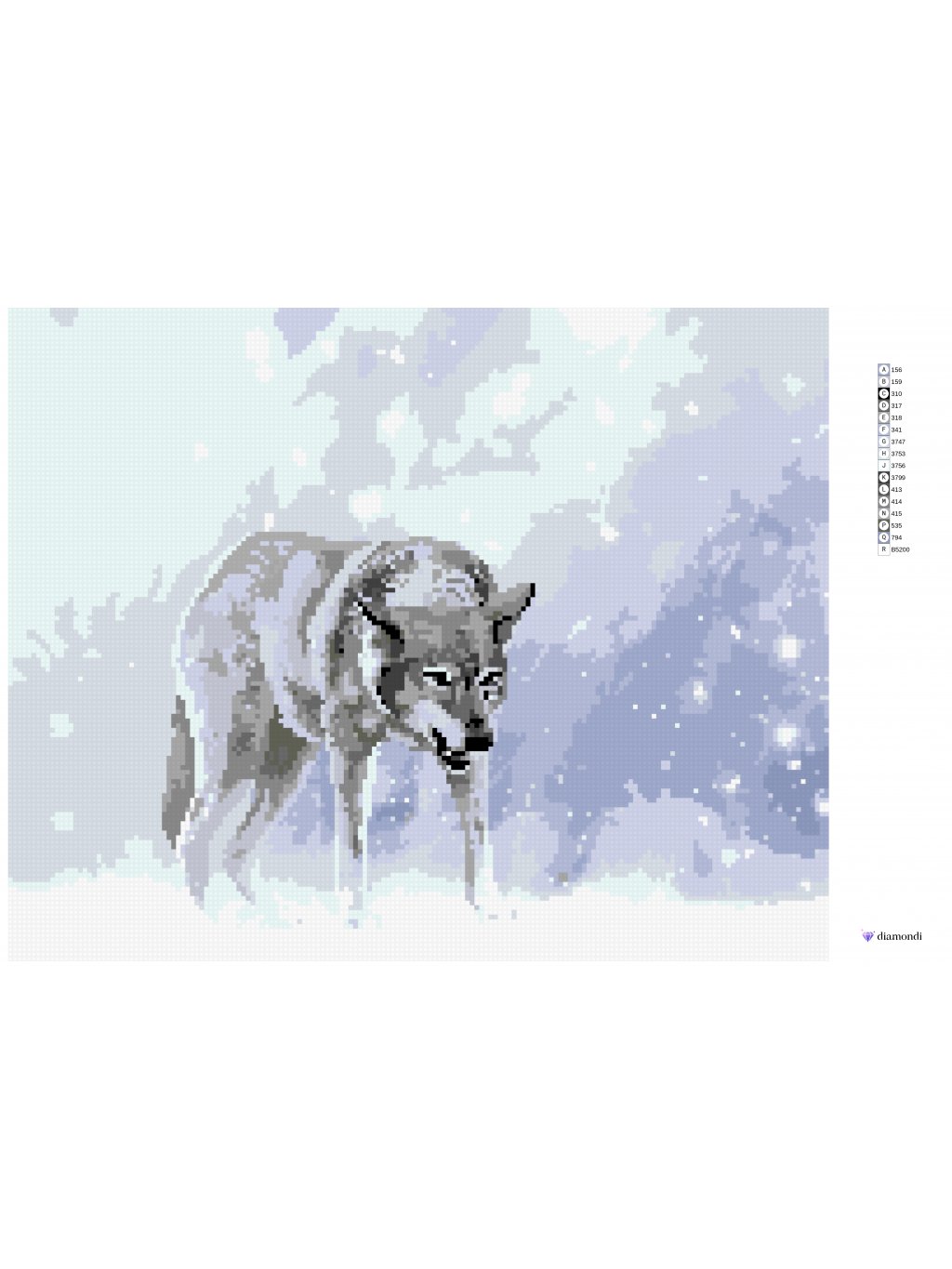 Diamantové maľovanie - SIVÝ VLK V ZIMNEJ KRAJINE