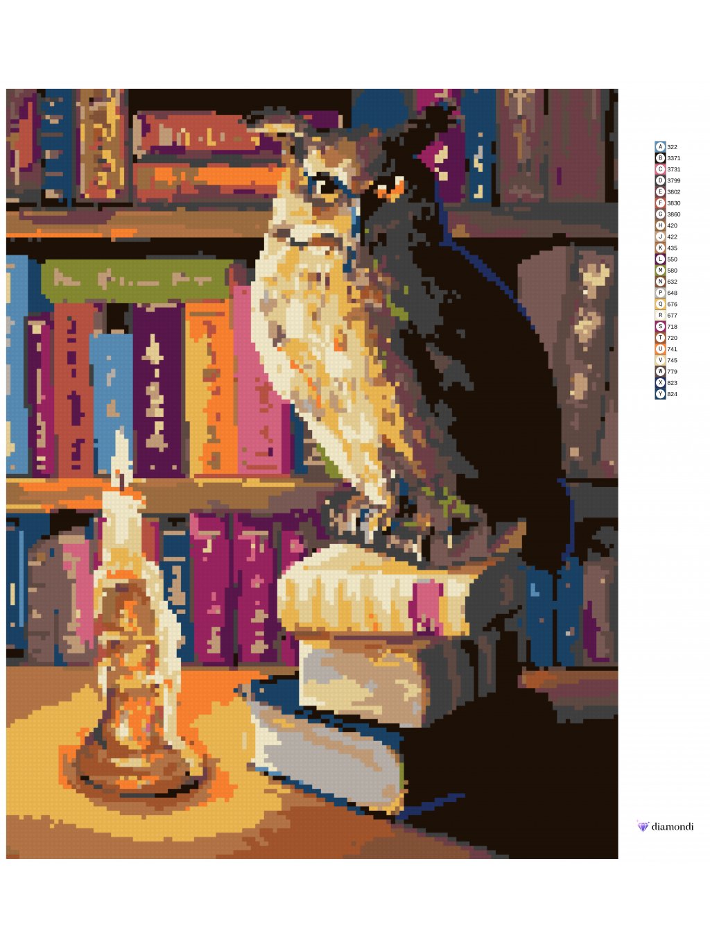 Diamantové maľovanie - SOVA V KNIŽNICE