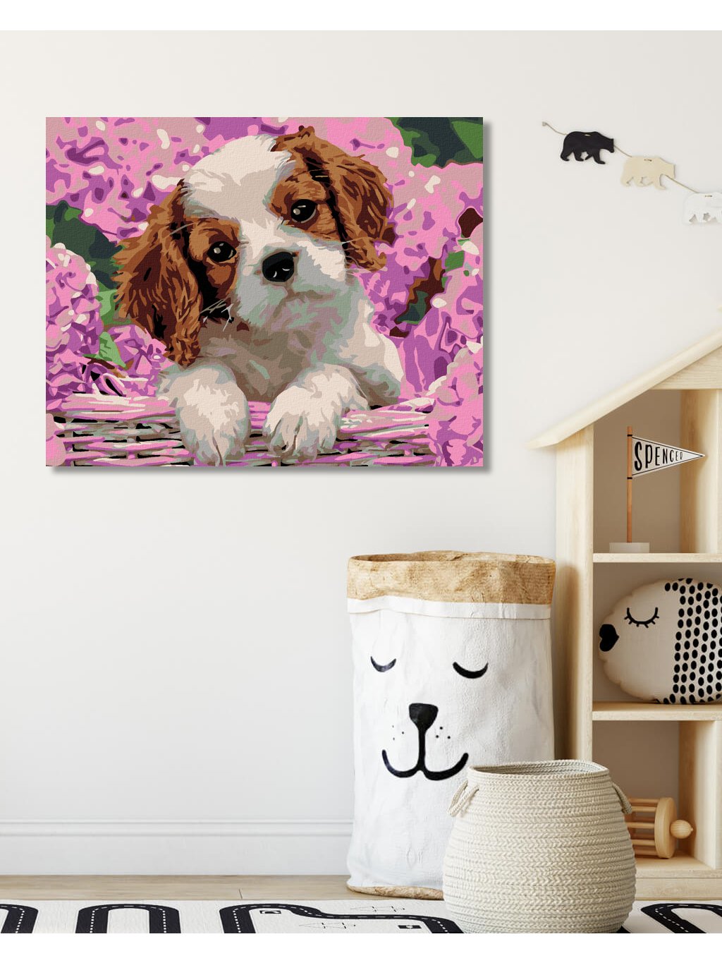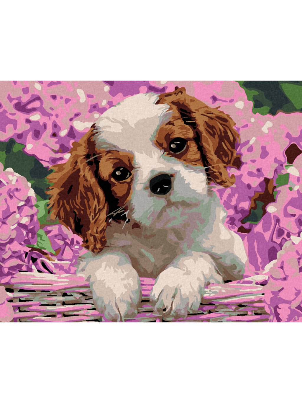 Diamantové maľovanie - ŠTENIATKO A HORTENZIE