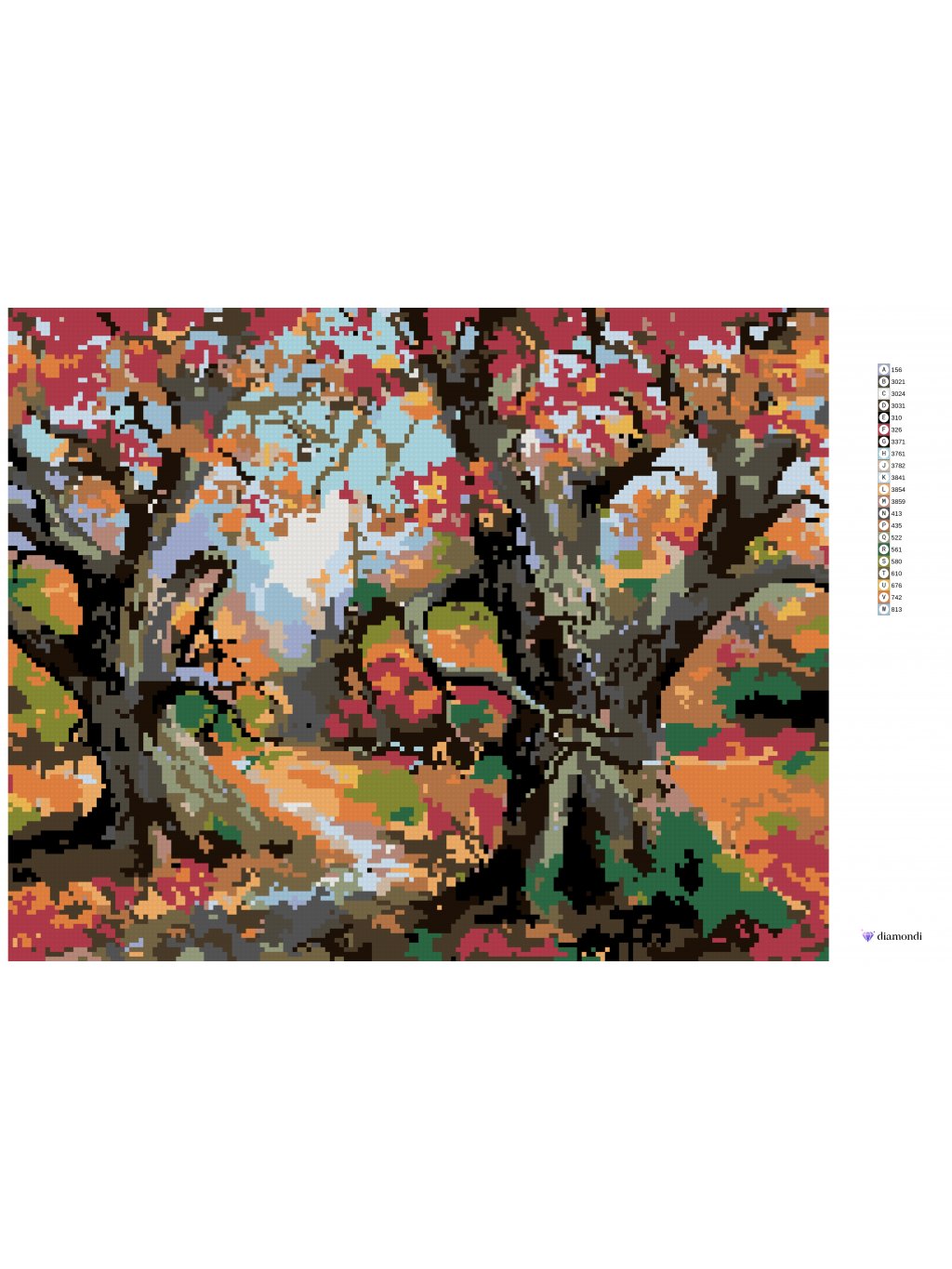 Diamantové maľovanie - STROMY A JESENNÁ KRAJINKA