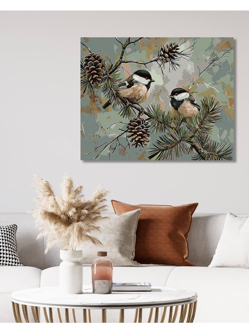 Diamantové maľovanie - SÝKORKA NA IHLIČNATOM KONÁRI