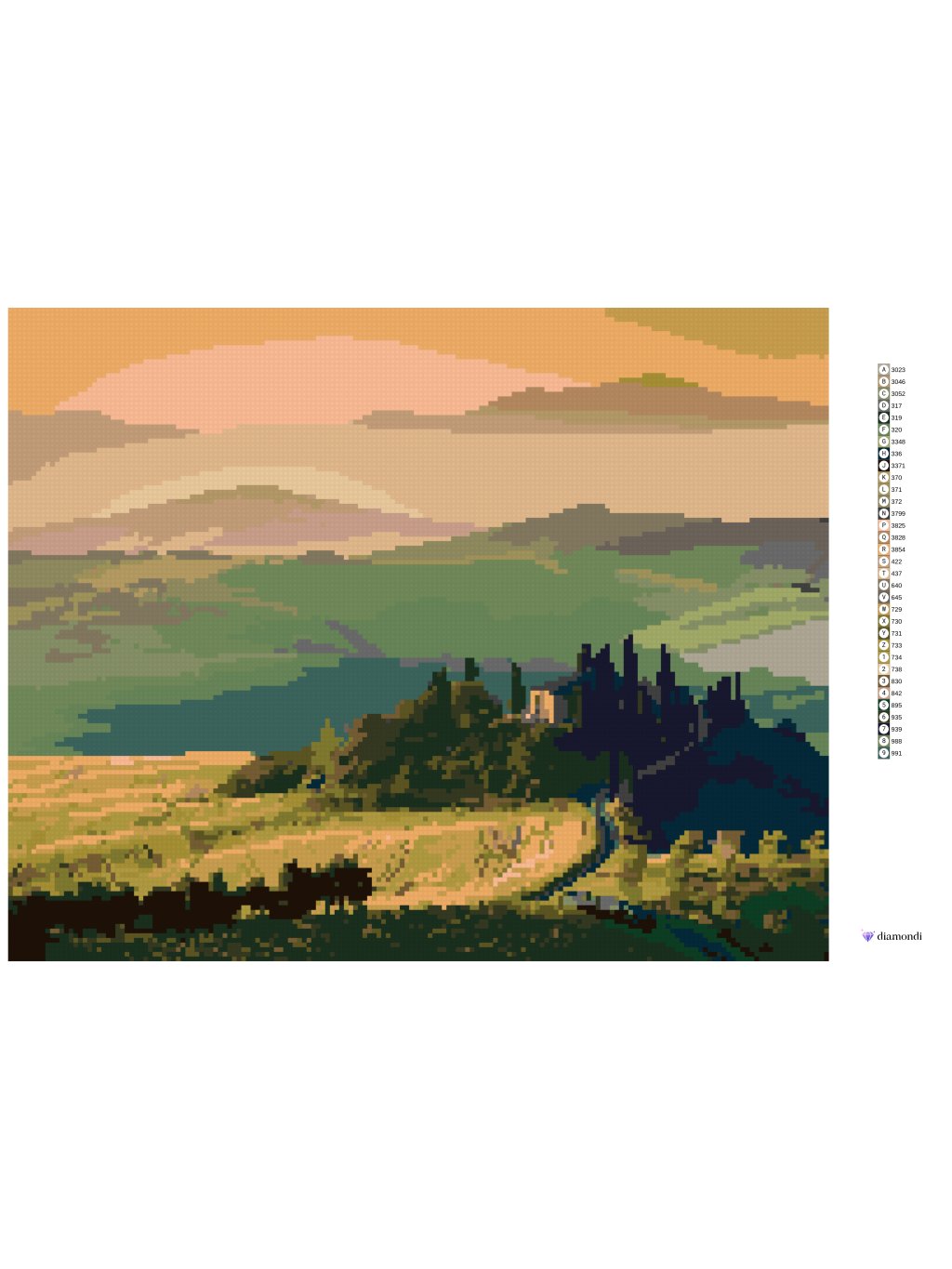 Diamantové maľovanie - TOSKÁNSKA KRAJINA A VÝCHOD SLNKA