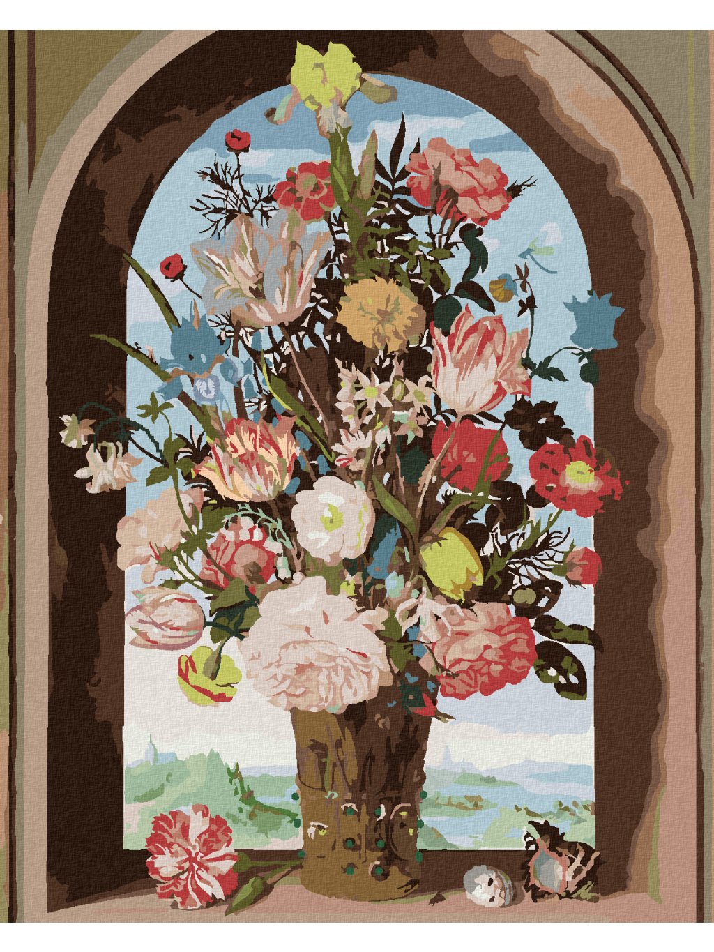 Diamantové maľovanie - VÁZA S KVETMI V OKENNOM VÝKLENKU (AMBROSIUS BOSSCHAERT)