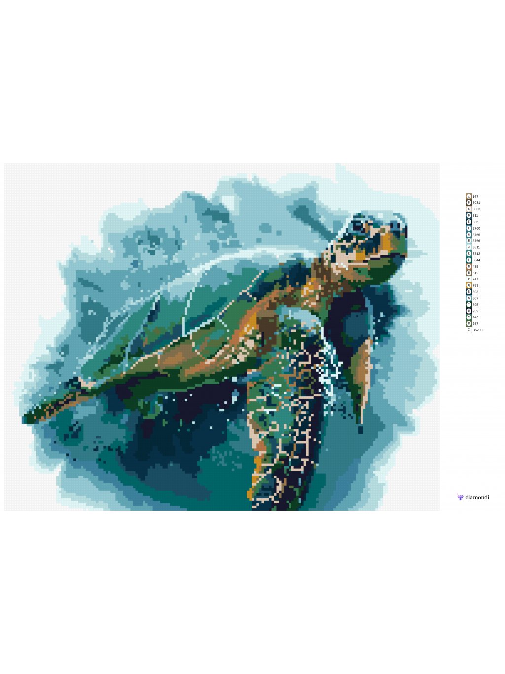 Diamantové maľovanie - VEĽKÁ MORSKÁ KORYTNAČKA NA MODROM POZADÍ