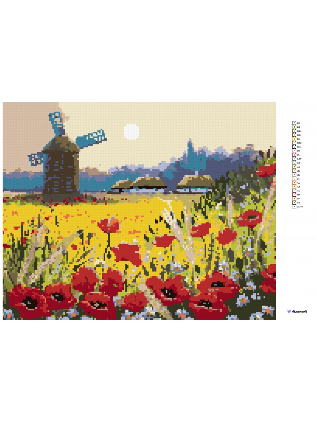 Diamantové maľovanie - VETERNÝ MLYN A VLČÍ MAK
