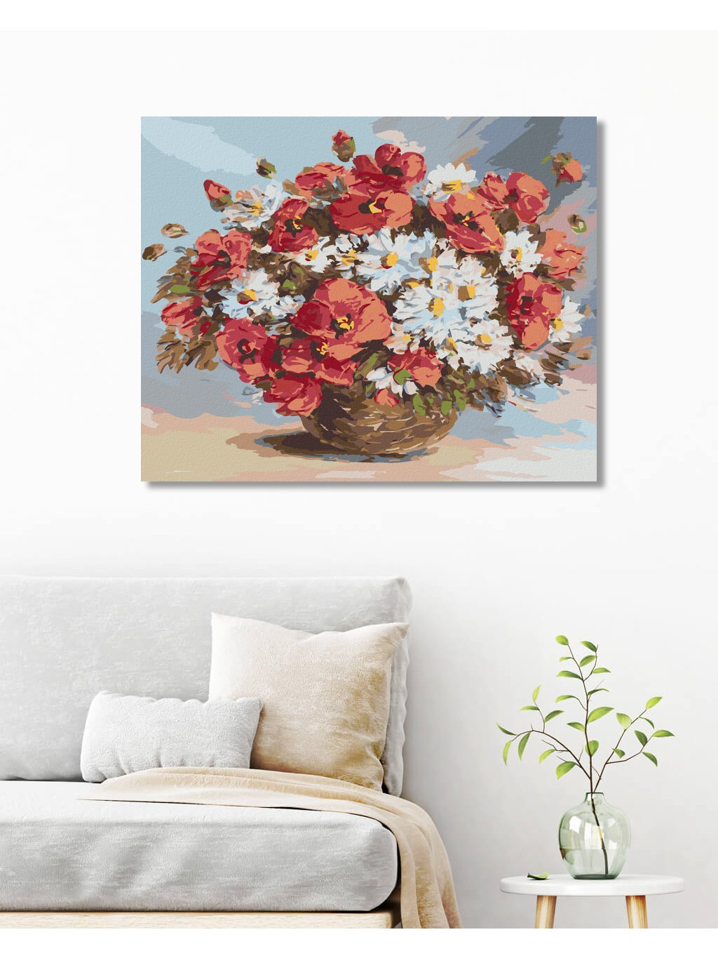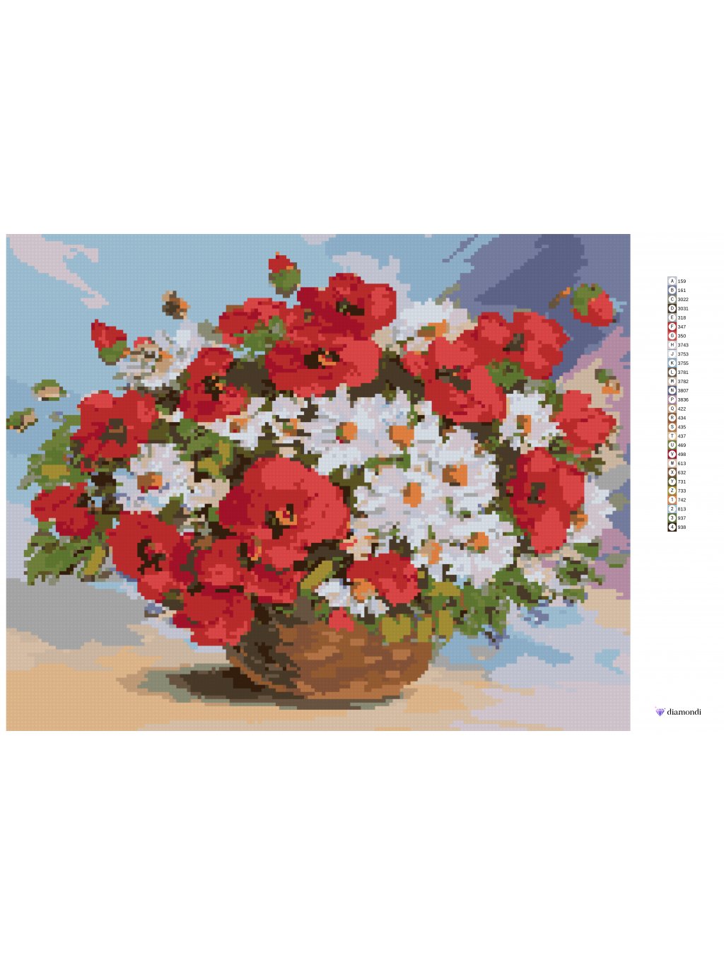Diamantové maľovanie - VLČIE MAKY A MARGARÉTY VO VÁZE