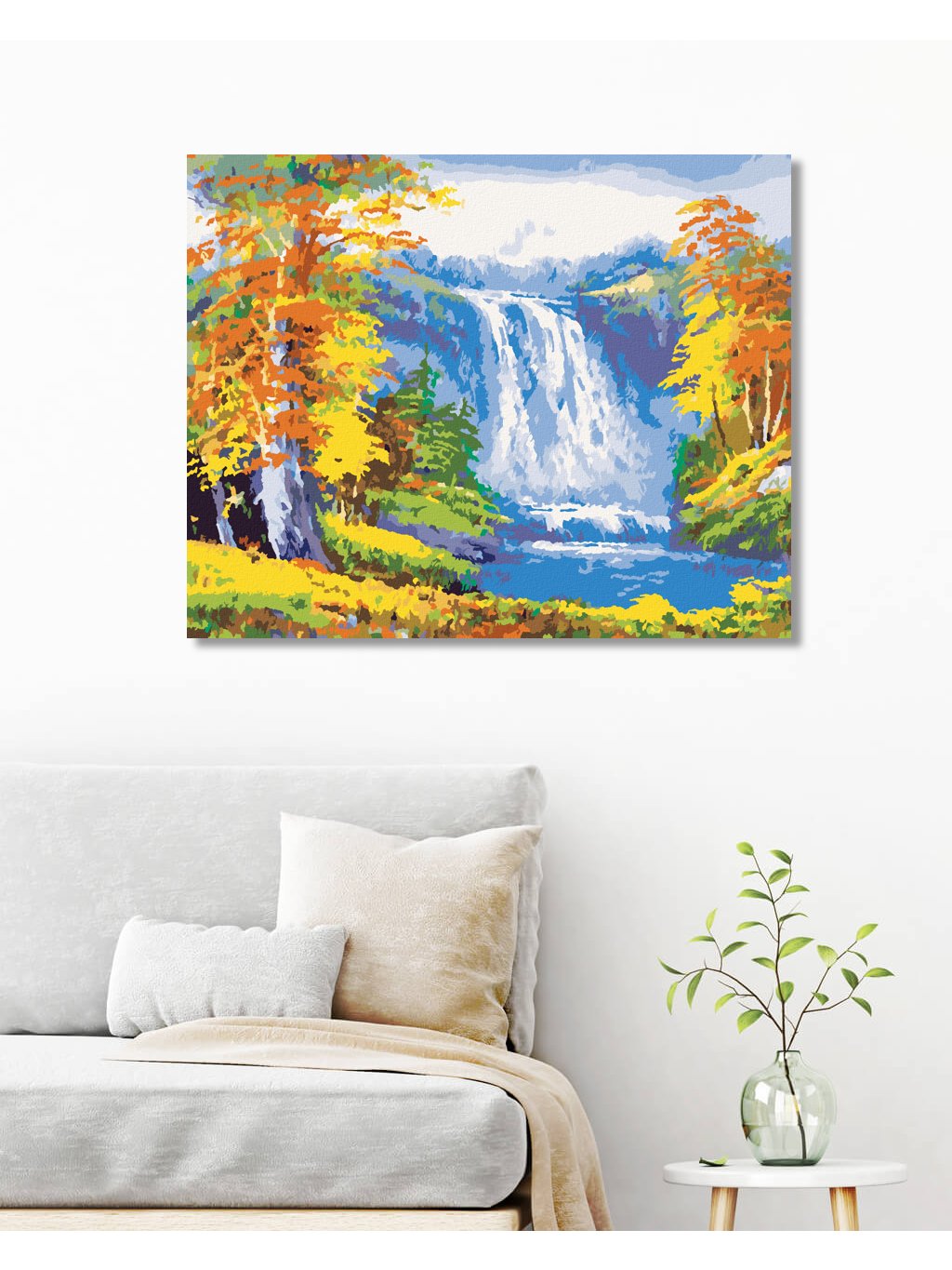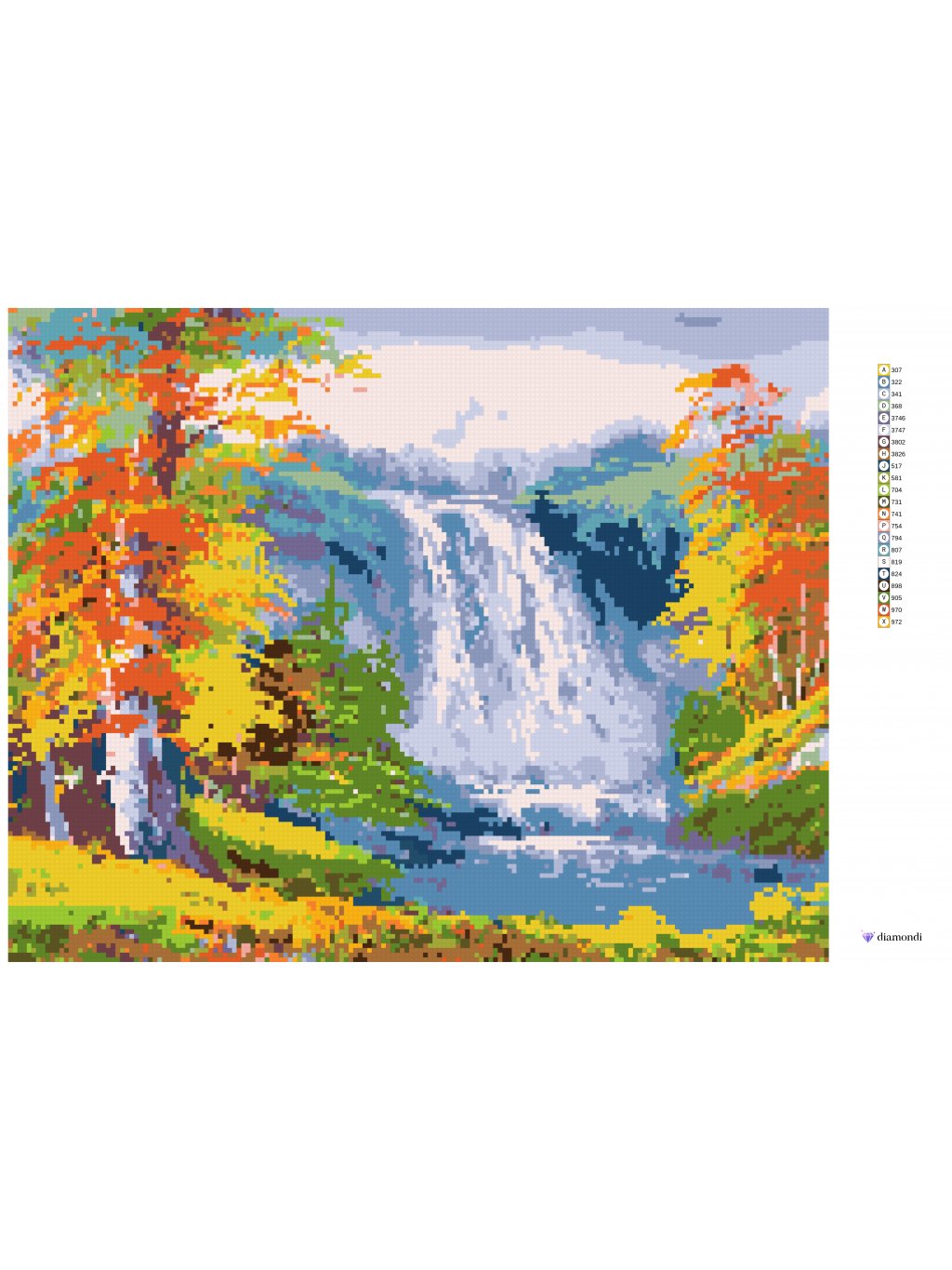 Diamantové maľovanie - VODOPÁD V JESENNOM LESE