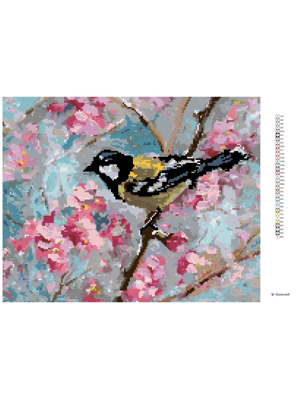 Diamantové maľovanie - VTÁČIK A RUŽOVÉ KVETY