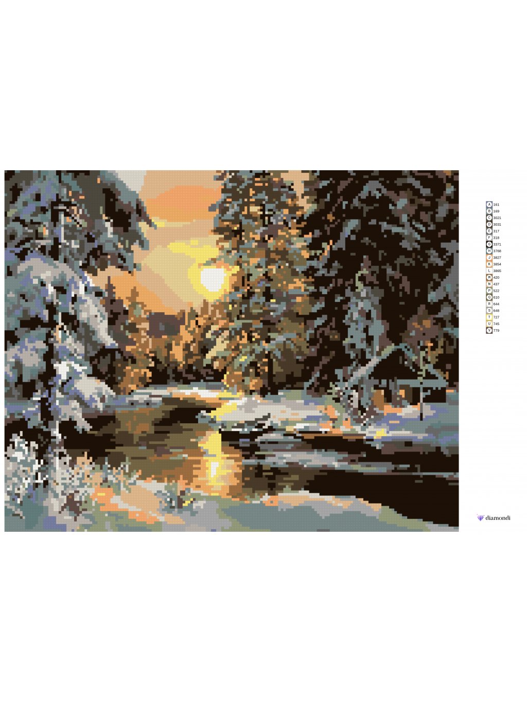 Diamantové maľovanie - ZÁPAD SLNKA NAD LESOM