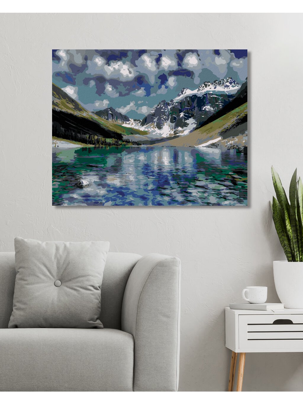 Diamantové maľovanie - ZASNEŽENÉ HORY A PRIEZRAČNÉ JAZERO (DENNIS FRATES)