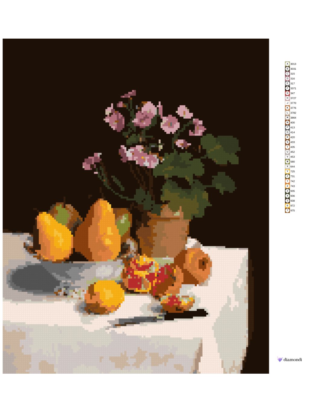 Diamantové maľovanie - ZÁTIŠIE, PRVOSIENKY, HRUŠKY A GRANÁTOVÉ JABLKÁ (HENRI FANTIN-LATOUR)