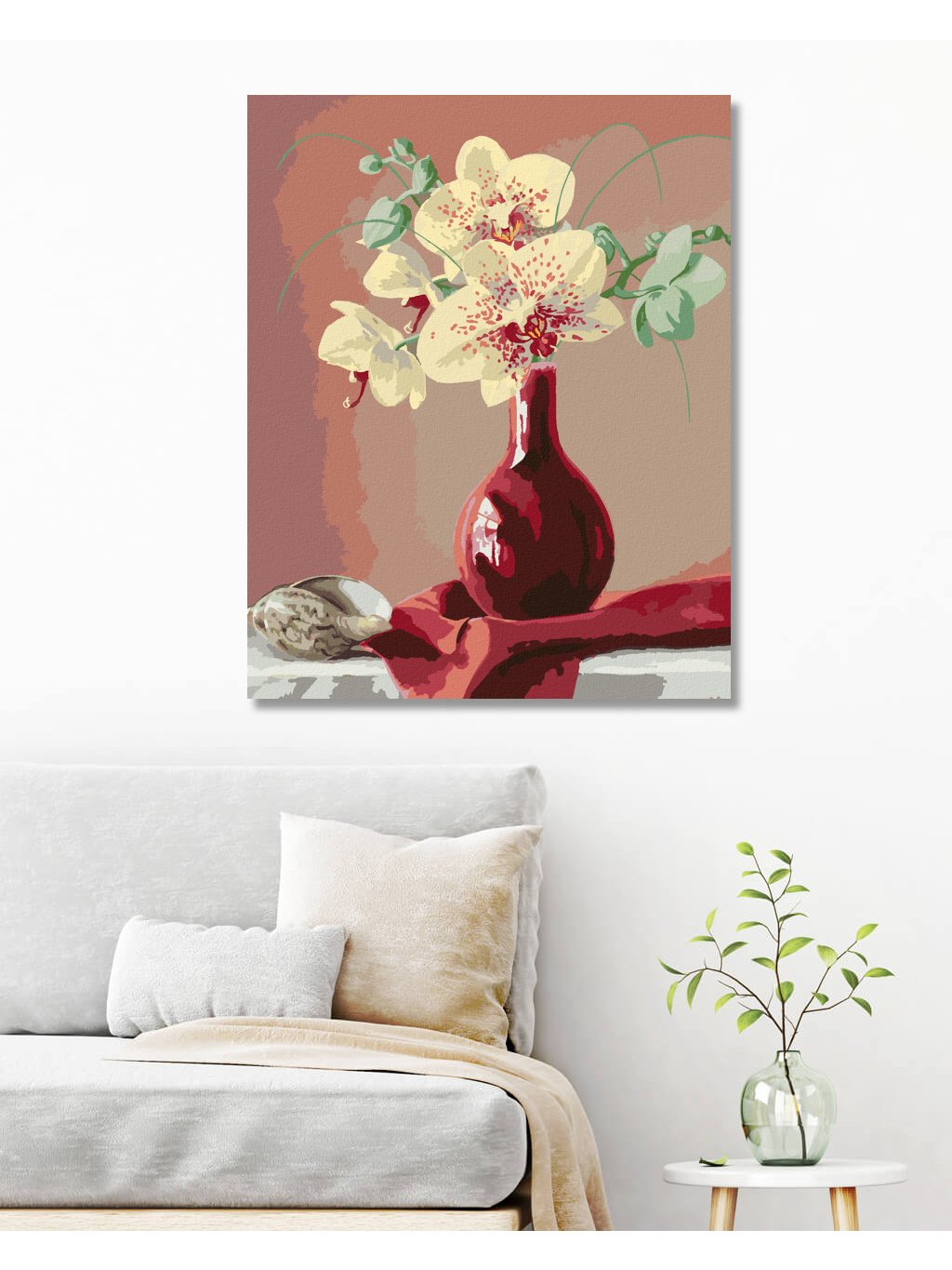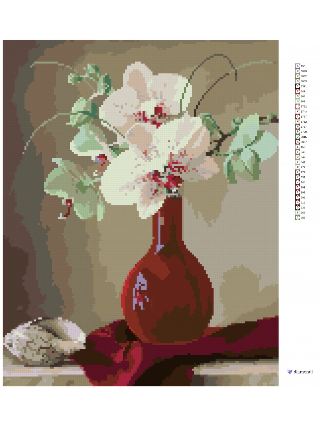 Diamantové maľovanie - ZÁTIŠIE ORCHIDEA V ČERVENEJ VÁZE A MUŠĽA (PIETER WAGEMANS)