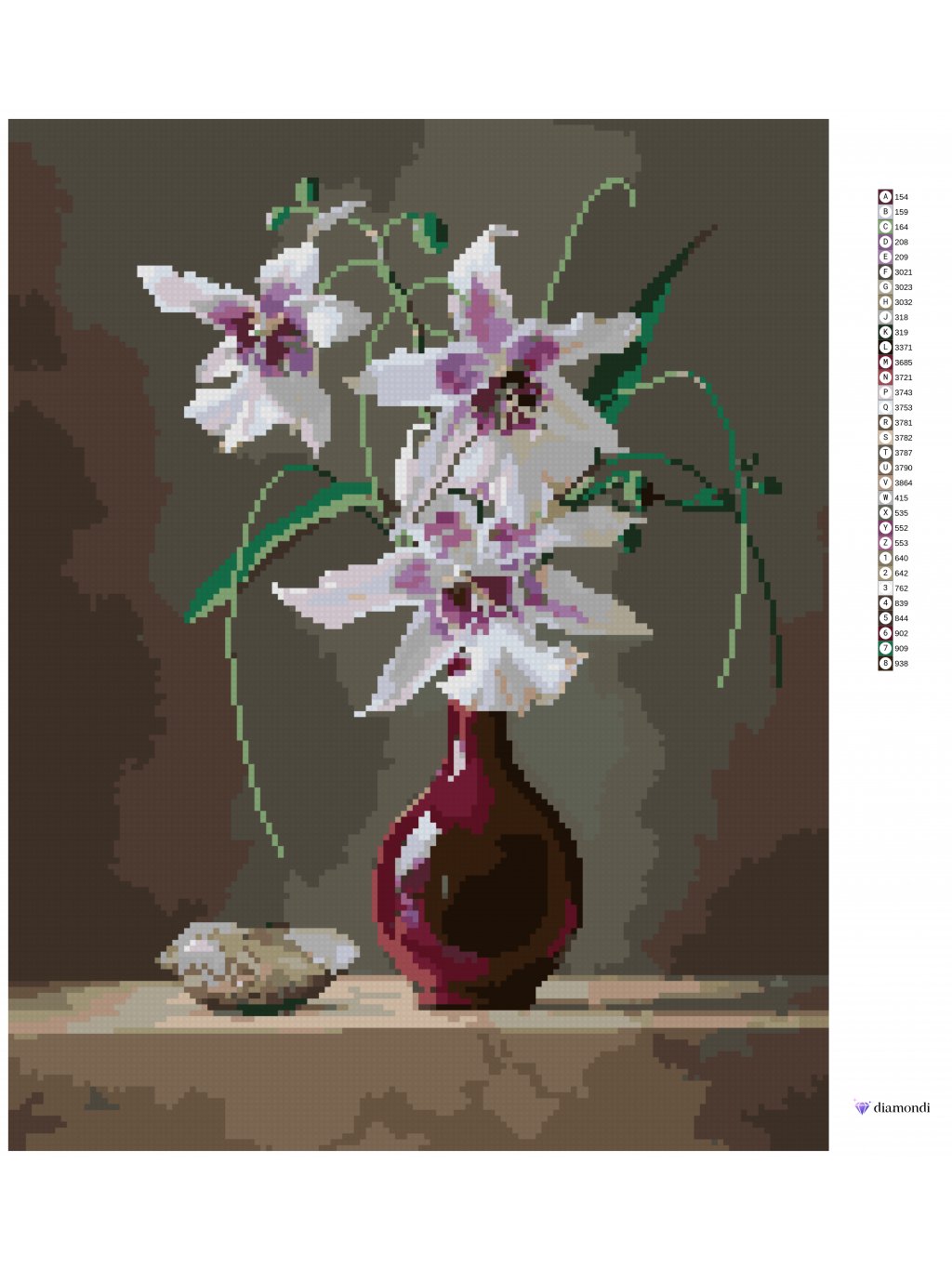 Diamantové maľovanie - ZÁTIŠIE ORCHIDEA V ČERVENEJ VÁZE A MUŠĽA (PIETER WAGEMANS)