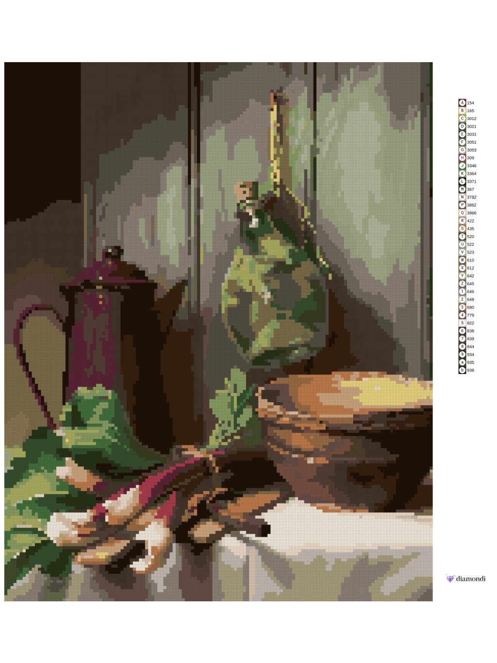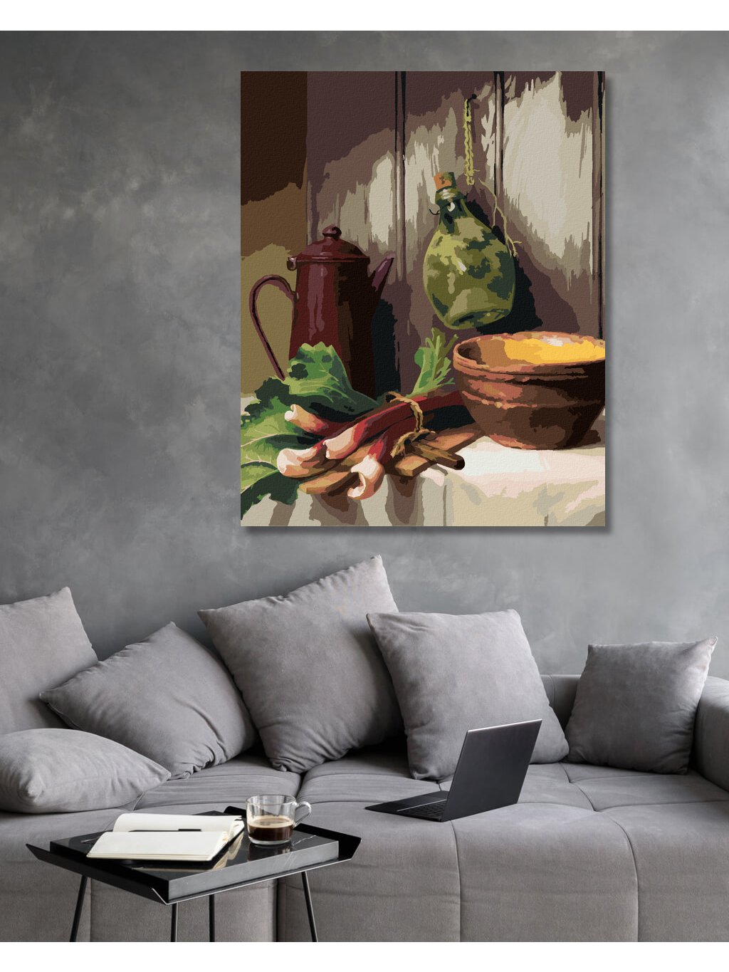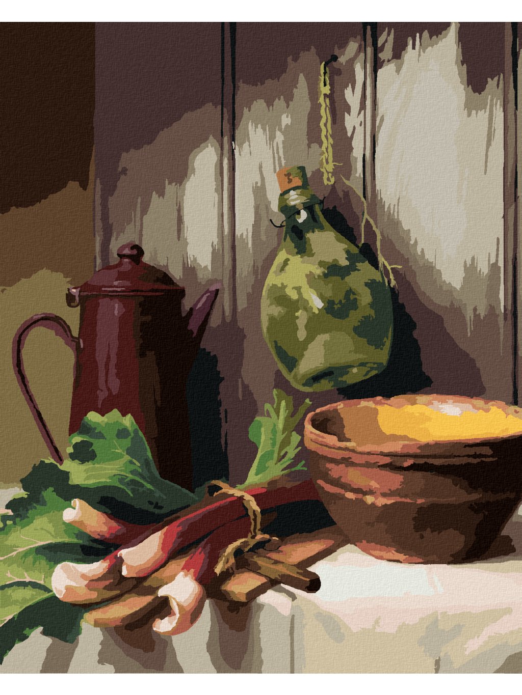 Diamantové maľovanie - ZÁTIŠIE REBARBORA, KANVICA, MISA A SKLENENÁ FĽAŠA (PIETER WAGEMANS)