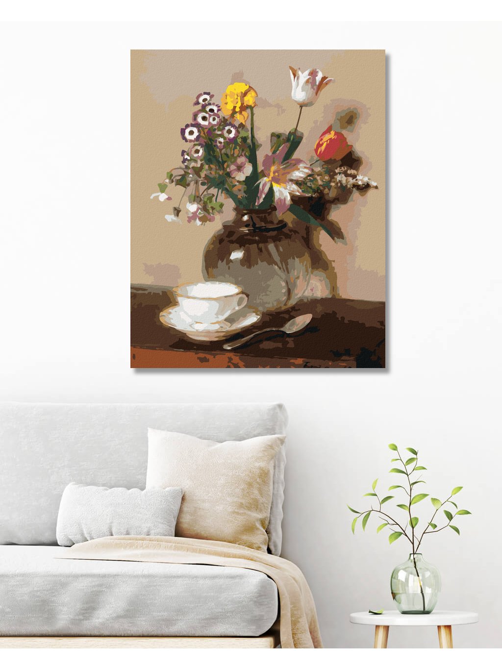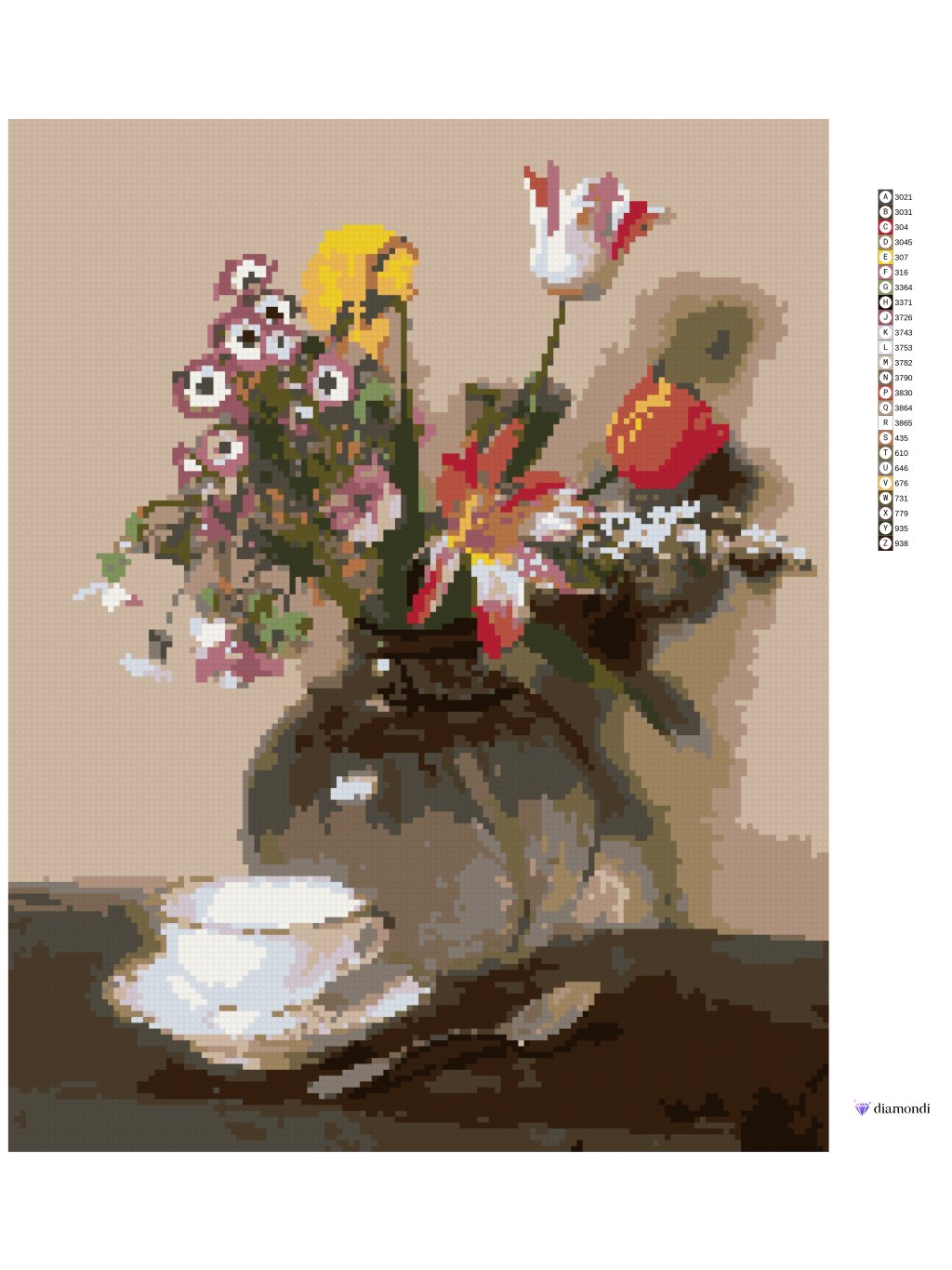Diamantové maľovanie - ZÁTIŠIE S KVETMI A ŠÁLKOU (HENRI FANTIN-LATOUR)