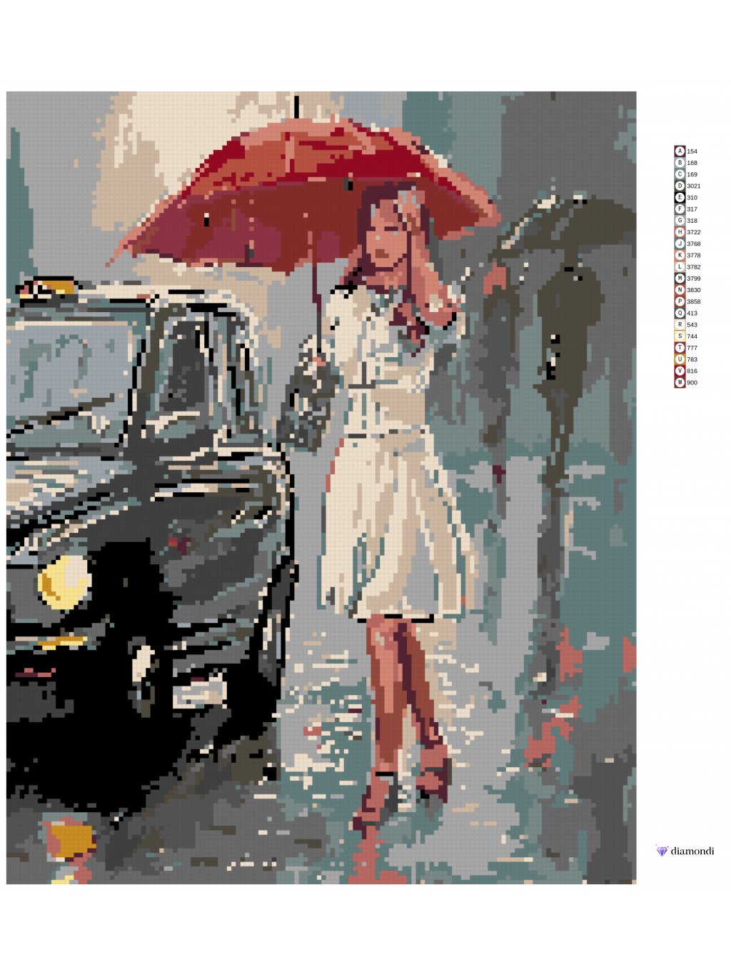 Diamantové maľovanie - ŽENA PRI AUTE V DAŽDI