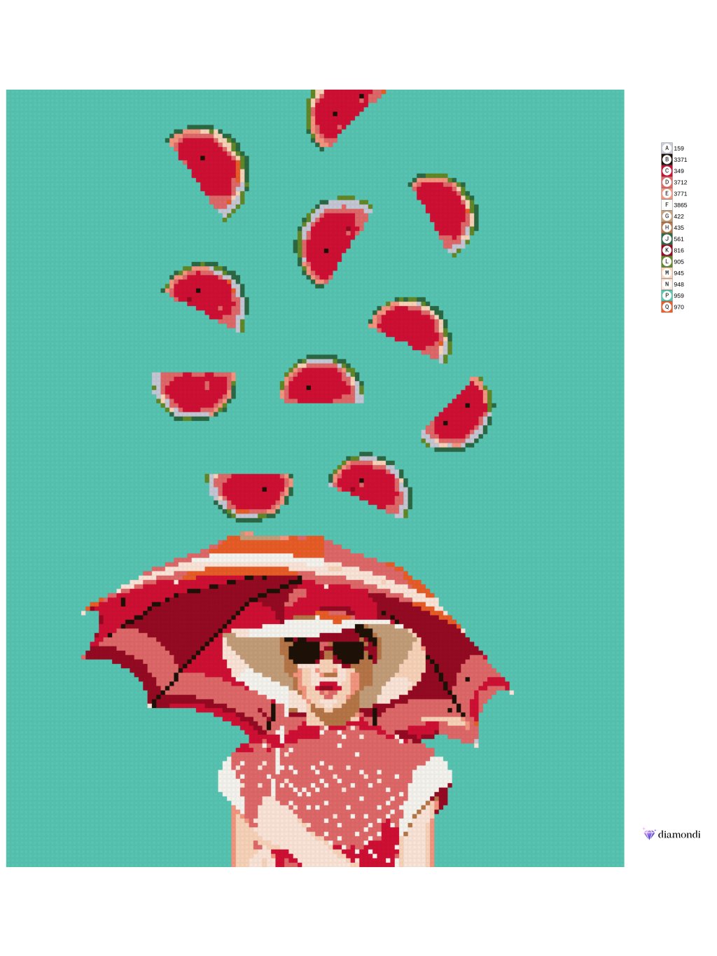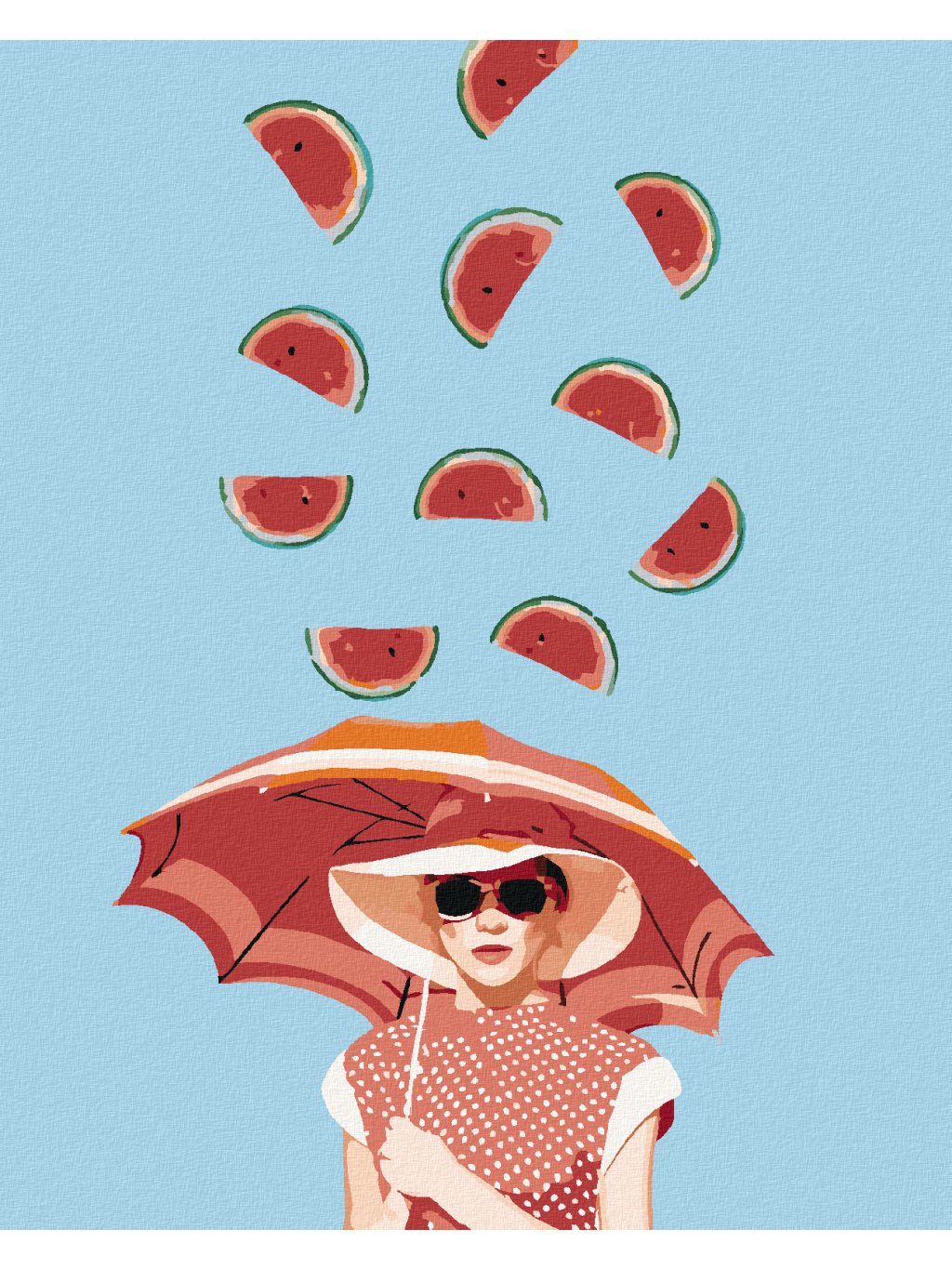 Diamantové maľovanie - ŽENA S DÁŽDNIKOM A PADAJÚCE MELÓNY