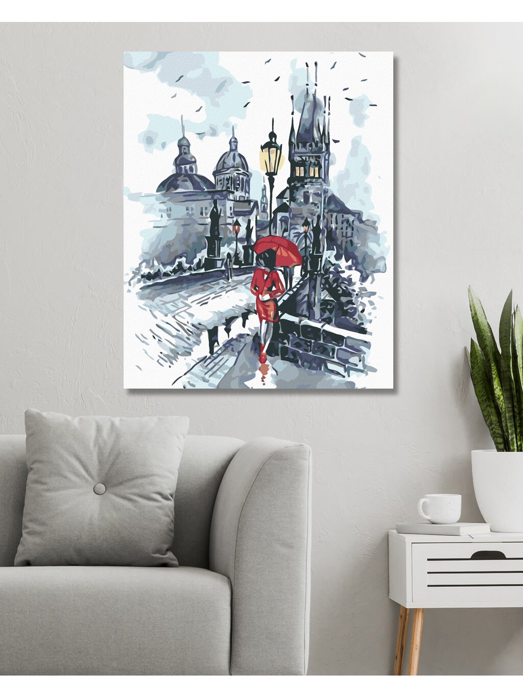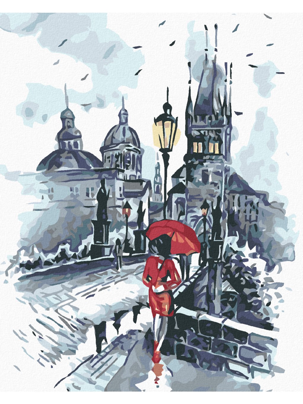Diamantové maľovanie - ŽENA S DÁŽDNIKOM NA KARLOVOM MOSTE