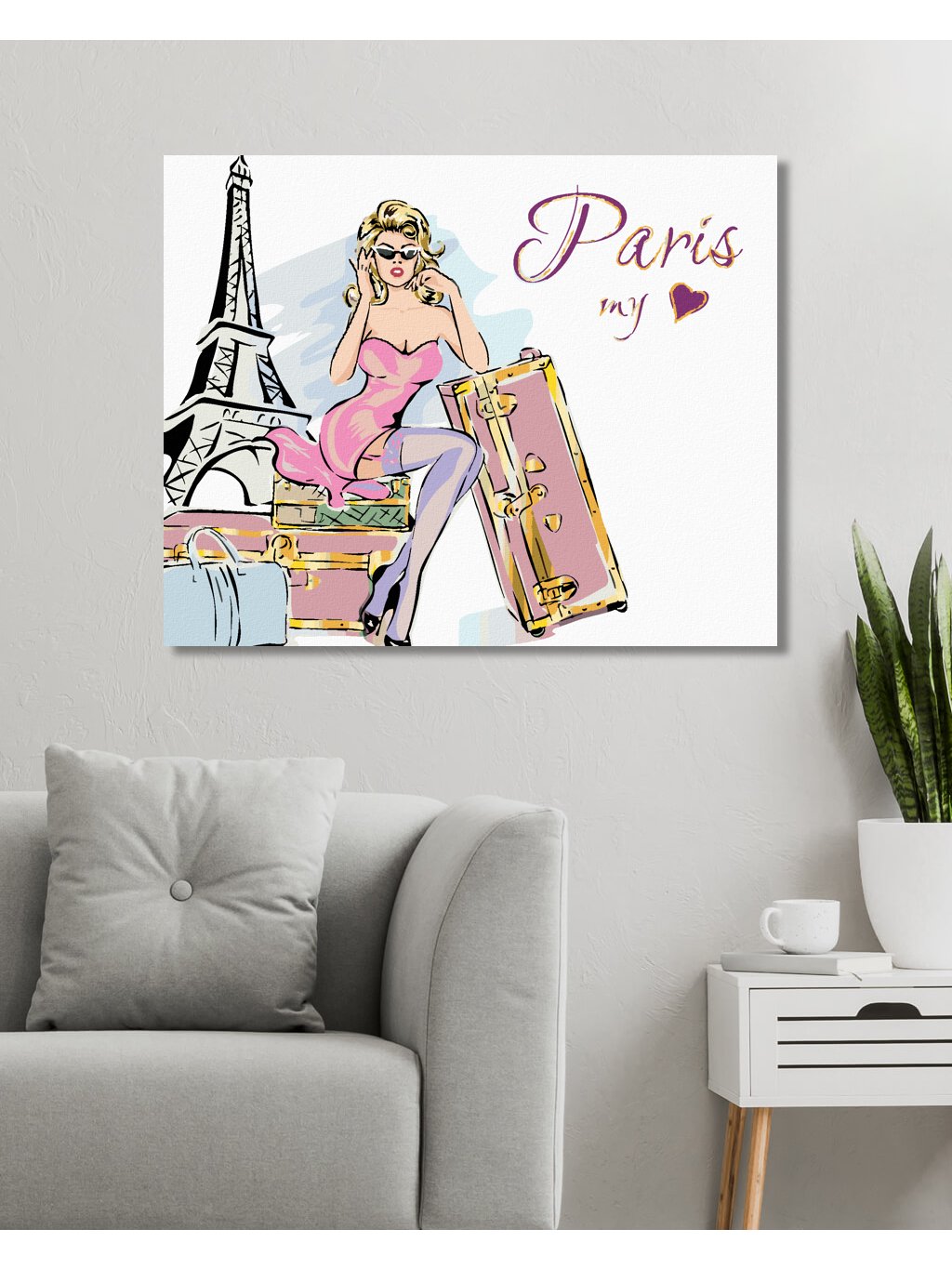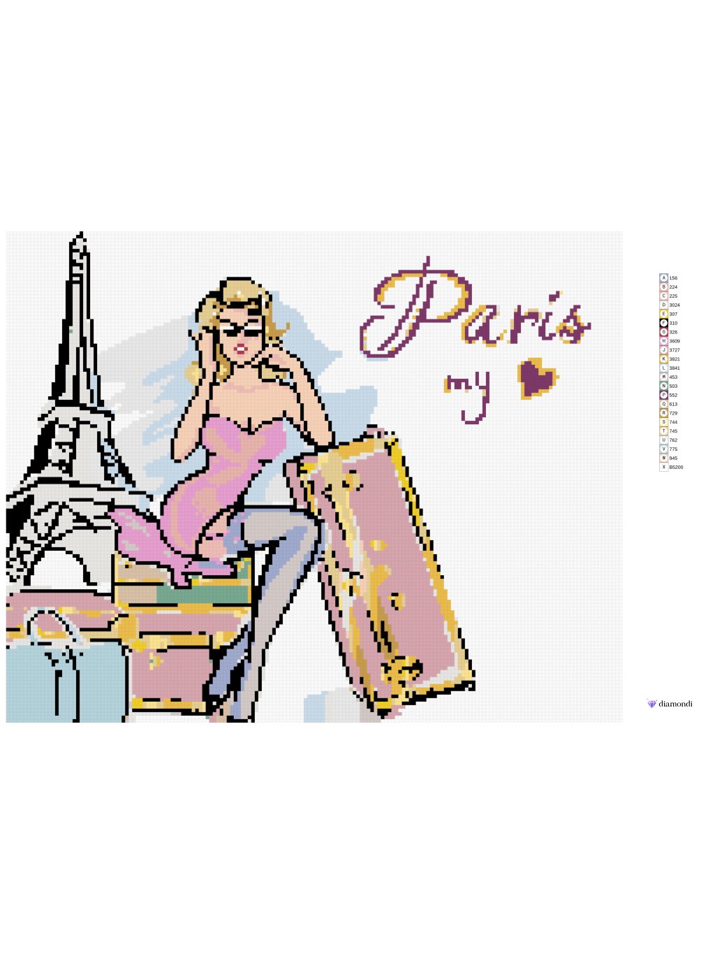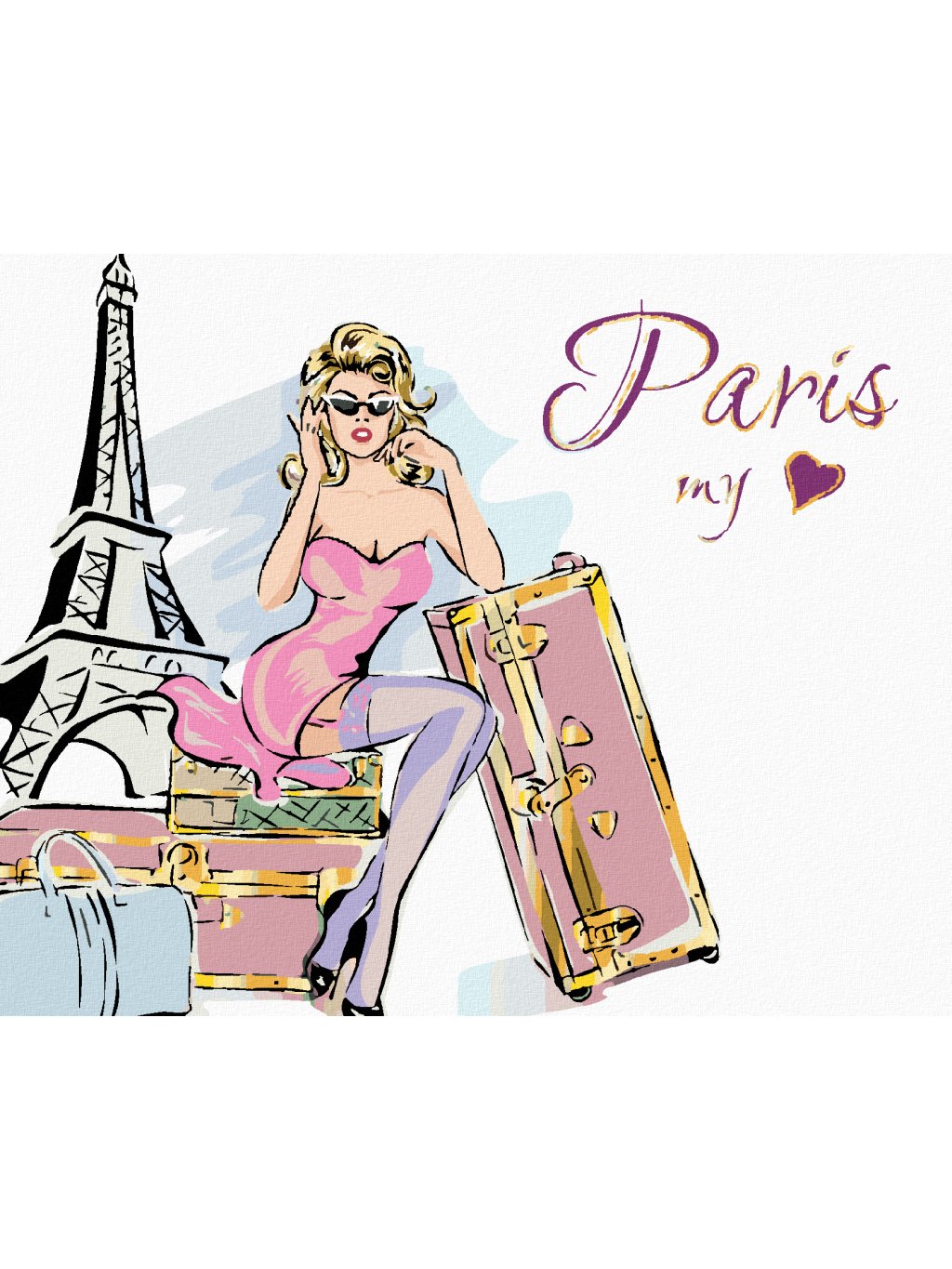 Diamantové maľovanie - ŽENA S KUFRAMI PRI EIFFELOVEJ VEŽI