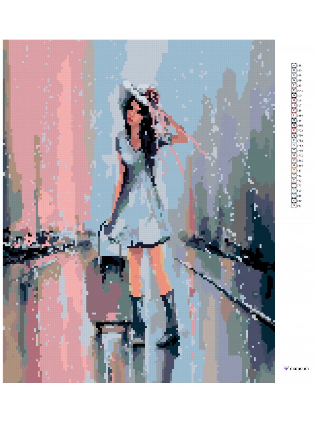 Diamantové maľovanie - ŽENA S KUFROM V DAŽDI