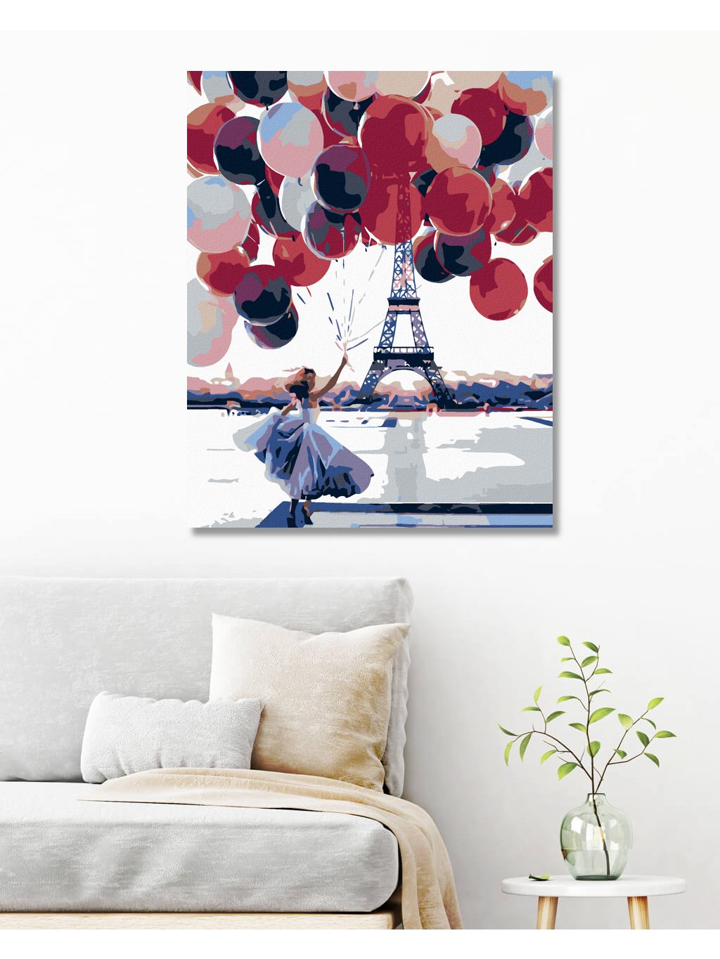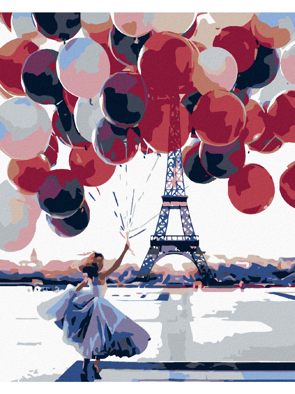 Diamantové maľovanie - ŽENA S MNOHÝMI BALÓNMI PRI EIFFELOVKE