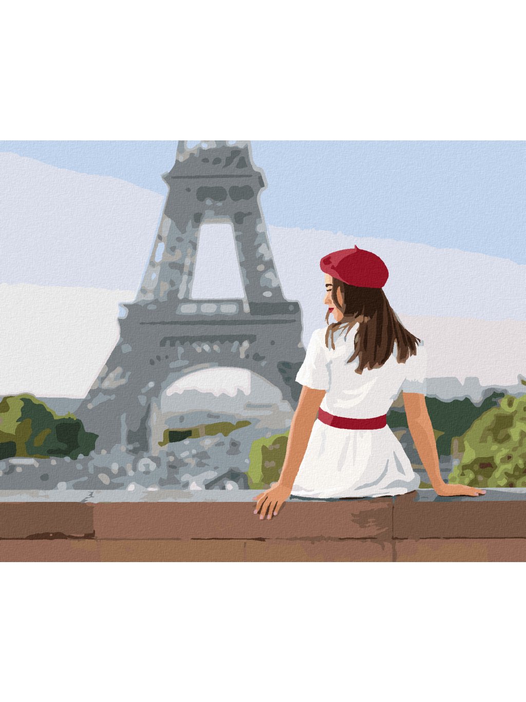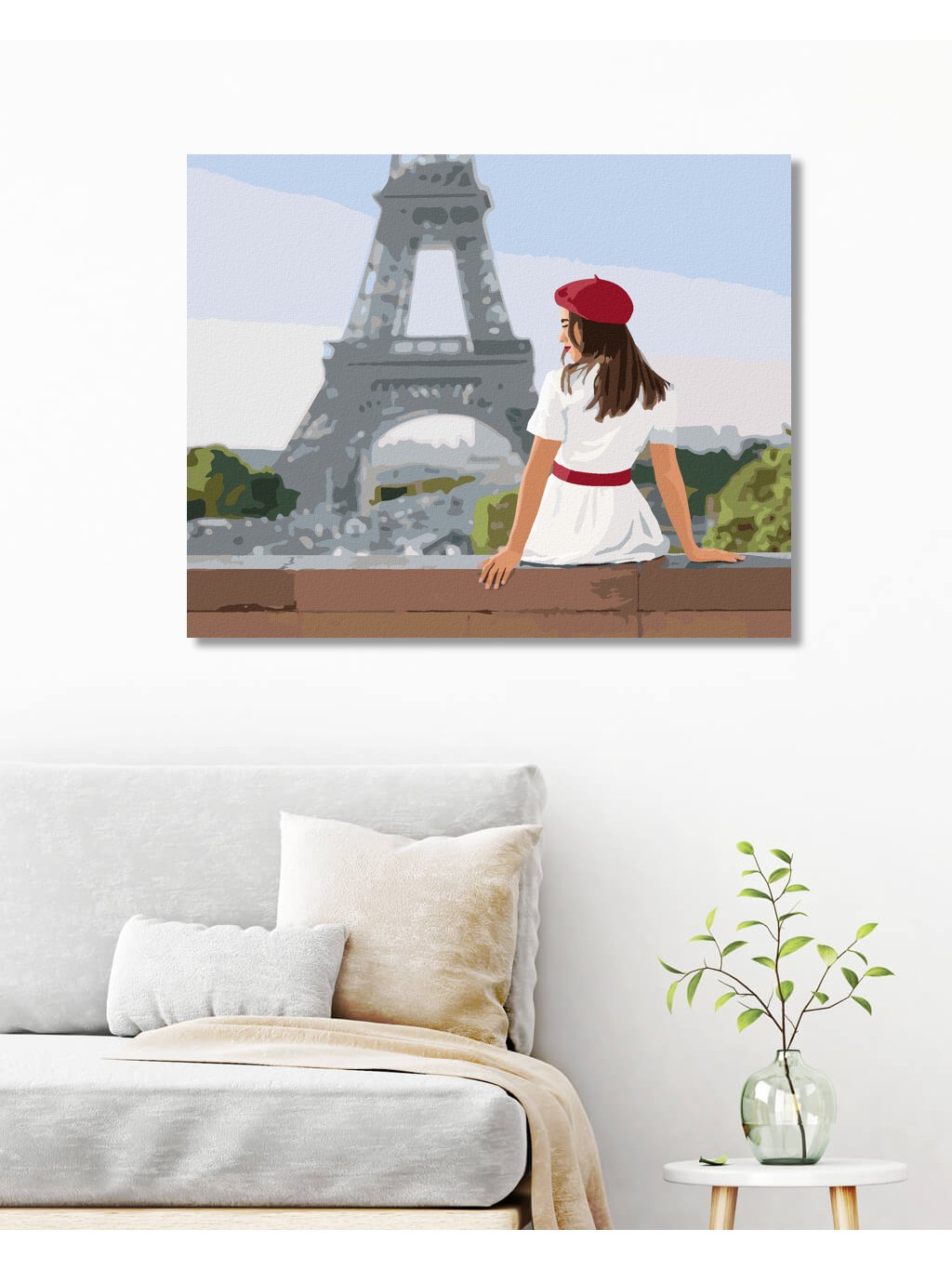 Diamantové maľovanie - ŽENA V BIELÝ ŠATÁCH A EIFFELOVA VEŽA