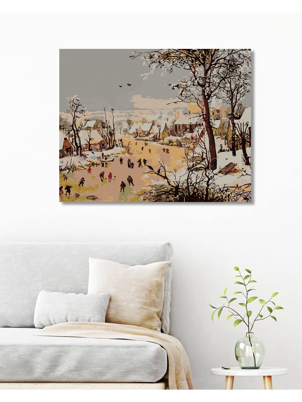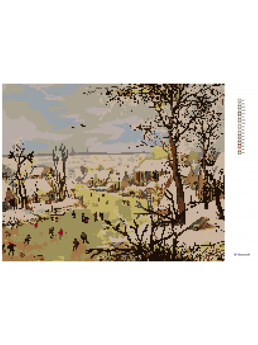 Diamantové maľovanie - ZIMNÁ KRAJINA S PASŤOU NA VTÁKY (PIETER BRUEGEL)