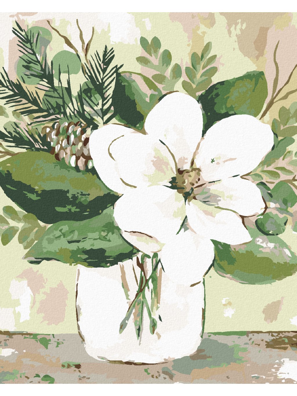 Diamantové maľovanie - ZIMNÉ MAGNÓLIE V POHÁRI 2 (HALEY BUSH)