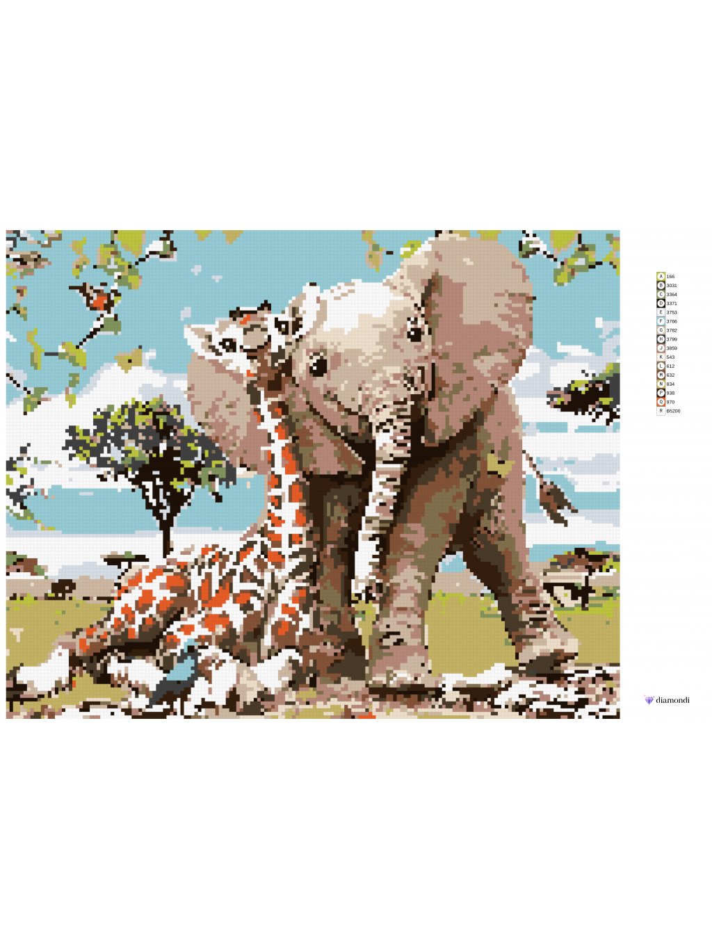 Diamantové maľovanie - ŽIRAFA A SLONÍK